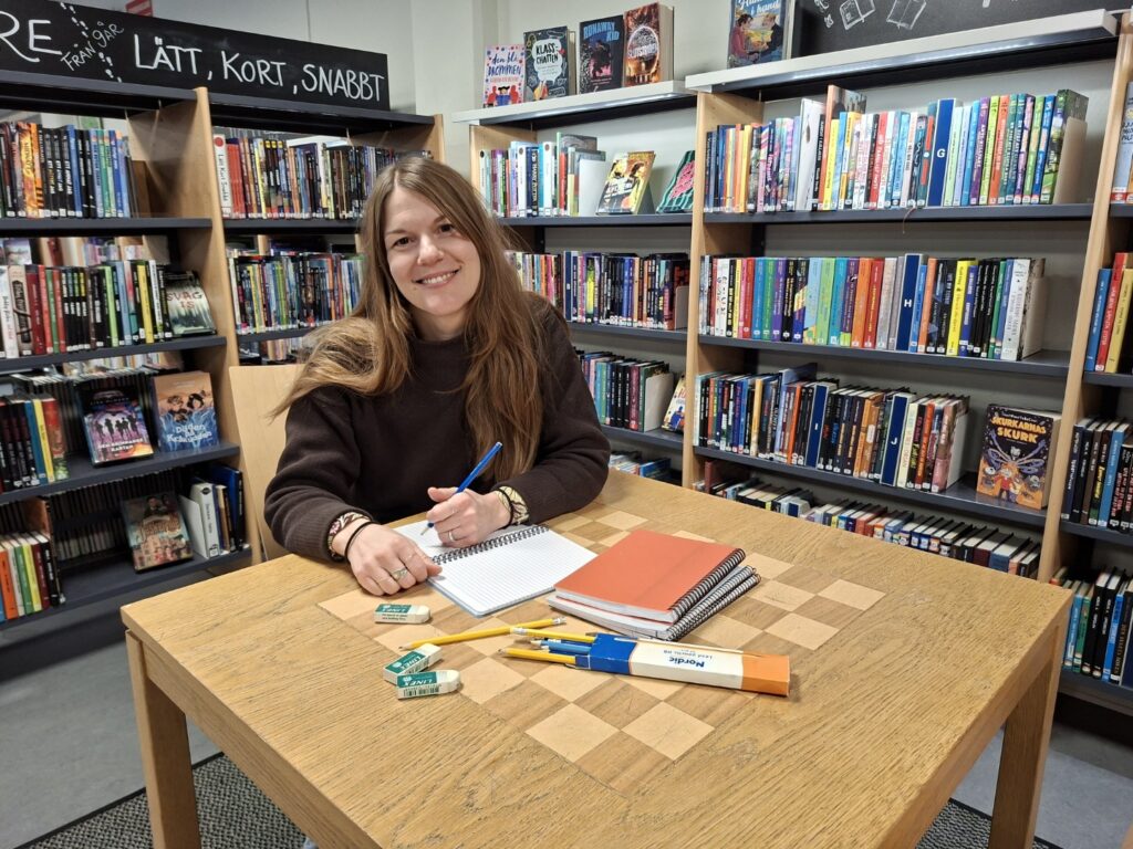 – Vi kommer använda oss av olika skrivövningar för att få igång fantasin och leka med språket. Till en av övningarna kommer vi låta slumpen styra och använda oss av tärningar till exempel. Och så ska vi fika förstås! säger bibliotekarien Amanda Piehl.